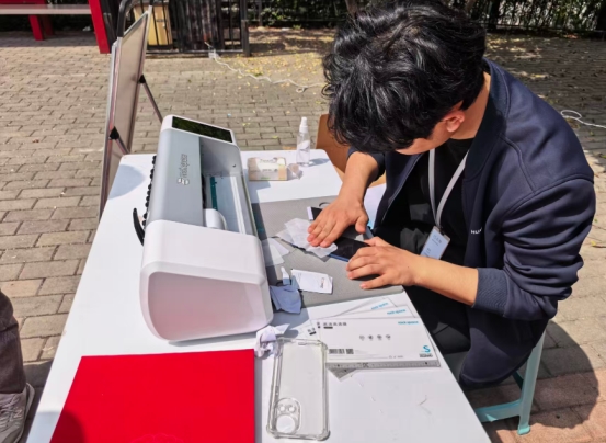 活动当天,华为工作人员们带着专业设备和充足物料,为居民们准备了两项核心便民权益:免费手机贴膜和现场以旧换新服务,同时还精心准备了伴手礼,让每一位参与活动的居民都能感受到浓浓的暖意。